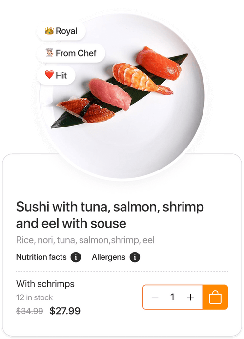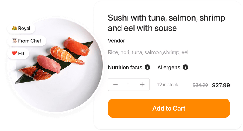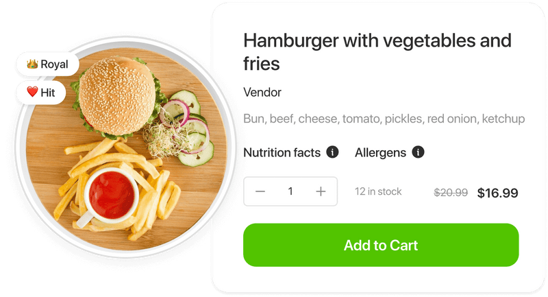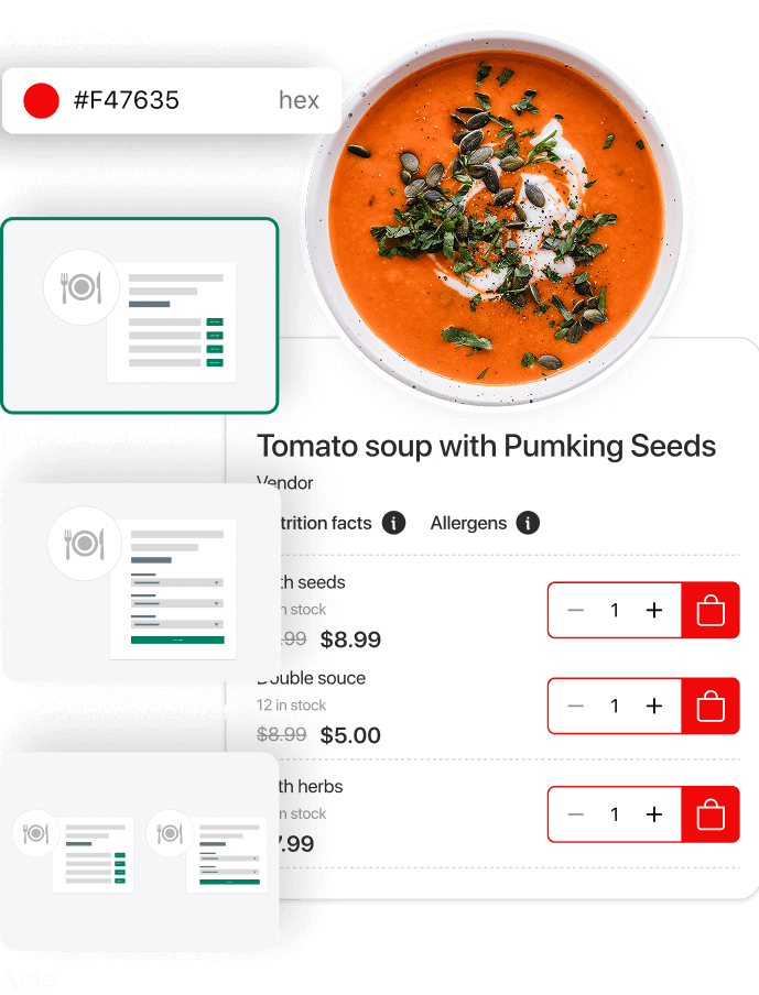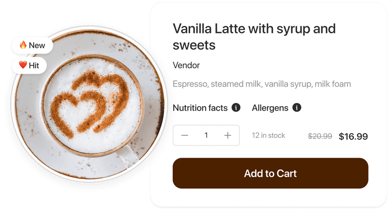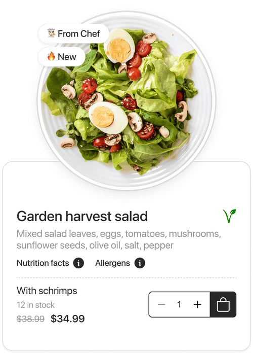 Whether you manage a café, bar, fine-dining restaurant, catering service, or fast-food shop, ServeUp, a Shopify restaurant menu app, adapts to your business needs. Build a unique experience that reflects your brand and delights your customers.