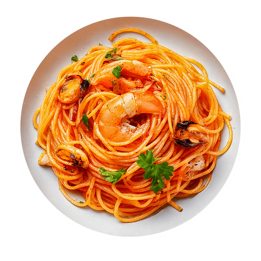 Linguine, fresh shrimp, mussels, calamari rings, clams, cherry tomatoes, garlic, extra virgin olive oil, white wine, fresh parsley, crushed red